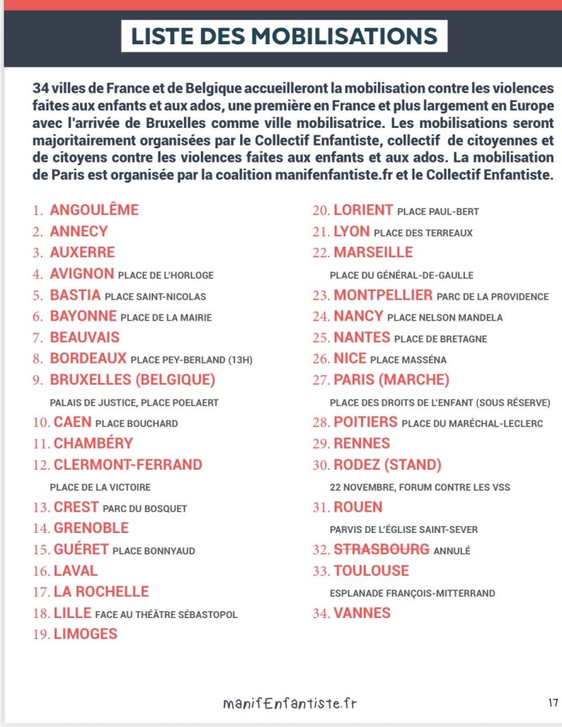 Contre les violences faites aux enfants et aux ados 13 Nov 2025 | Actualités, Infos Appel à manifester samedi 15 novembre partout en France Facebook Twitter