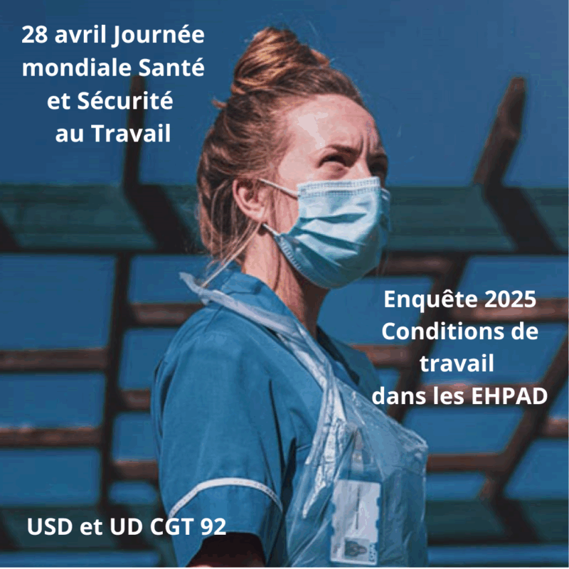 L’Union Syndicale Départementale de la Santé CGT des Hauts-de-Seine a mené une enquête dont elle a présenté les résultats le 28 avril, à l’occasion de la journée mondiale de la santé et de la sécurité des travailleuses et travailleurs avec l’appui de l’Union Départementale CGT 92. Cette enquête a été menée auprès des professionnel·les du secteur médico-social et sanitaire sur la question de la santé au travail, secteur très fortement féminisé. Ils rejoignent les constats de l’étude IRES CGT sur les métiers du soin et du lien[1].